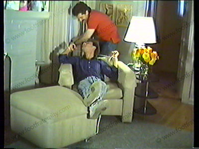 Ryan lets his roommate tie him up & gets his white socked feet & bare feet tickled with fingers, feathers, hairbrush, etc. Ryan is helpless as his feet are tickled!