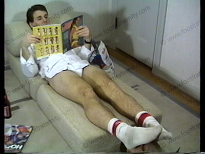 Coming in like Tom Cruise, Eric, in white shirt, white sox & underwear, slides in to have foot service. Sox are cleaned & sniffed, & his barefeet serviced, as his feet are paid homage to.