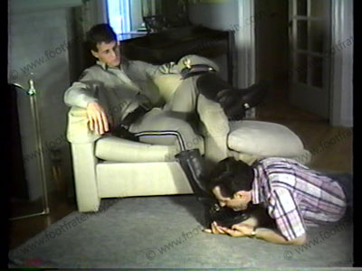 His black leather boots licked clean, soles & tops, then pulled off for much sock sniffing & sock worship, then barefoot service while his superiority comes through in his comments.