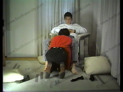 In jeans, dark socks & slip-ons, this cocky guy makes slave beg to sniff socks, lick shoes, & do bare feet. Uses demeaning words to humiliate. Arrogant attitude! Verbal abuse & orders. He walks on slave & massages crotch with foot.