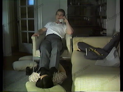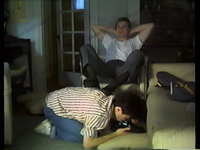 Kyle turns on to his favorite films, calls slave to clean his brogues, smell dark socks, & lick, kiss, massage & worship his bare feet. He gives many verbal commands. Good power & verbalization.