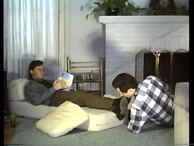 In a sweater, black loafers, & black socks, he lays back to have shoes licked, socks sniffed & licked clean & bare feet worshiped & serviced. Gives many orders. He calls his buddy & sets up a foot service for watching the Super Bowl.