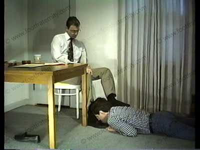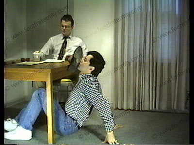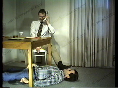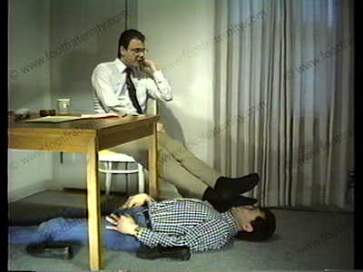 Todd talks dirty & gives commands while in his shirt, tie, slacks, Italian loafers & thin dark OTC socks. Much erbalization to the slave. He often watches & comments as the slave licks his shoes, & spends most of the tape in sock smelling & worship. No barefoot action.