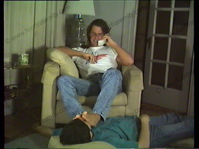 In black Nike hi tops, jeans, & t-shirt, Jack gives orders & humiliation. Sneakers licked clean, dark socks sniffed, kissed & worshiped. Making slave beg to smell feet, shoes & fall in love with his toes, - culminating in Jack clipping his toe nails over the slave's open mouth. Verbal humiliation. Close ups of toes in the face. Ultimate in domination & humiliation!