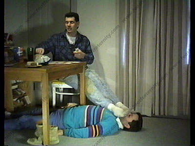 Playing solitare, Gino makes his slave lick his filthy boots, remove them, smell his sweaty white socks, then lick, kiss & worship his bare feet. He fires out orders & service to his feet & footgear!