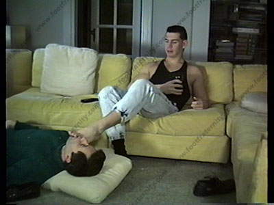 He relaxes & he gives orders to his slave to lick his boat shoes, smell his dark socks then do homage & worship to his toes & feet. Verbalizing & adoration.