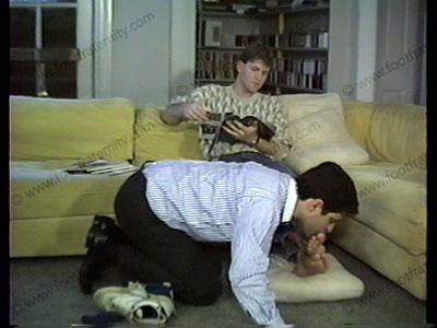 In jeans & sneakers with white sox, Kevin answers about having his feet licked, kissed and treated as a young god. Slave demonstrates complete service to his sneakers, sox & barefeet.