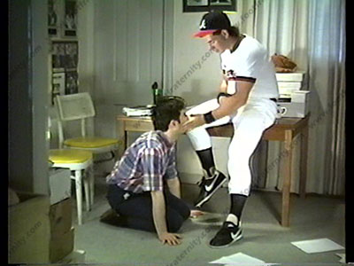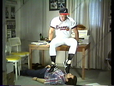 Gino, back to give the manager a hard time & forces him to lick his cleates, smell his thin baseball socks, be a foot mat, & lick barefeet. Spits in the guy's face, slaps it, kicks him in the butt & completely degrades him.