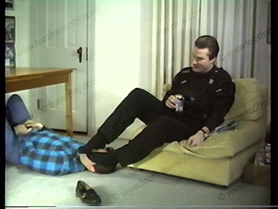 In sweater, pants, black socks & black Bally Loafers, Vince degrades slave, giving orders of shoe licking, sock sniffing & barefoot worship. Humiliating verbalization!