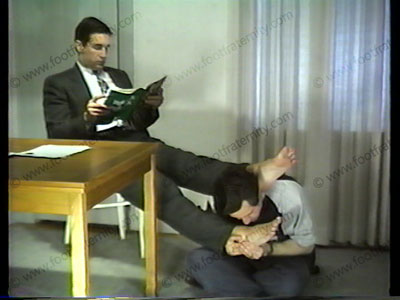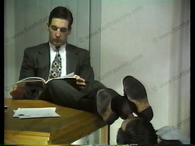 He hires a minor employee, but to get the job, he has to lick the boss' loafers, smell socks & worship feet. The applicant shows how low he will go to get the job! Some verbalization as he places himself at the boss' feet!