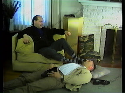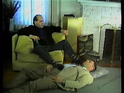 Verbalization & domination as interview questions. In shirt, slacks, loafers & patterned dress sox, shoes licked & sox smelled. Wiggles & rubs socked feet on the face. Barefoot action! Walked on.