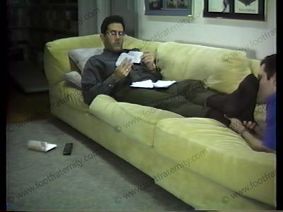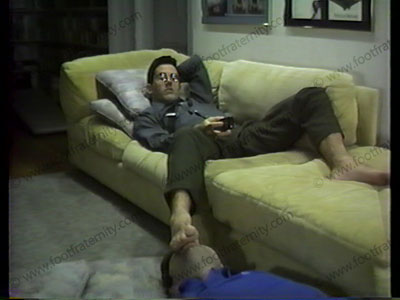 In his tie, dark shirt, patterned dark dress sox & loafers, Lexx answers the questions to you, telling how he expects to have his feet, sox & shoes worshipped. Then lays back to watch a movie while he has his shoes licked, socks smelled & barefeet worked on.