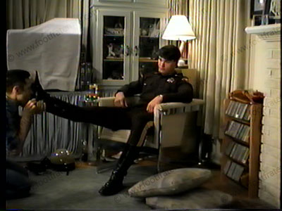 Motorcycle cop, black riding boots & white sox gets total foot worship from obedient victim. All foot/boot service to this hunk!