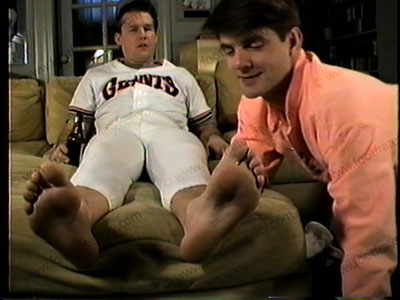 In uniform, he comes home for Cory to serve his baseball cleats, smell & worship the sweaty white baseball "sheer" sox in stirrups & bare foot adoration. No verbalization, just love making to the sox & bare feet of this baseball star. Close ups.