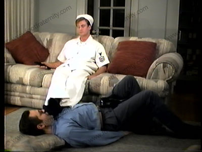 In whites, he lets buddy service his shoes, thin sheer sox & bare feet with much toe sucking and close ups of this preppy Sailor!