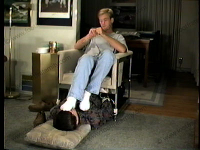 In jeans, T-shirt, sweat sox and brown suede Bass Saddle shoes, Hale forces his tied up math teacher to worship at his sox & feet. Super humiliation with dominance, cocky yuppie attitude & verbal abuse. Incredibly HOT!