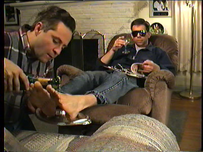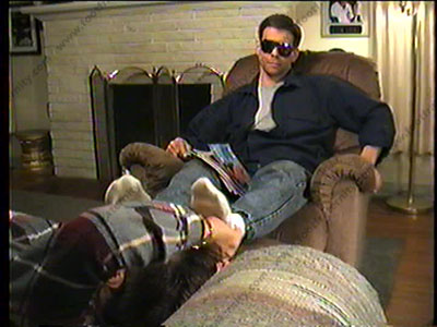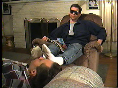 Ray sits back in recliner as he answers questions about being serviced & having his feet worshipped. He has his sweat socks sniffed clean, his bare feet licked, kissed & sucked as he arrogantly lays back to enjoy the adoration & worship of his long narrow feet!