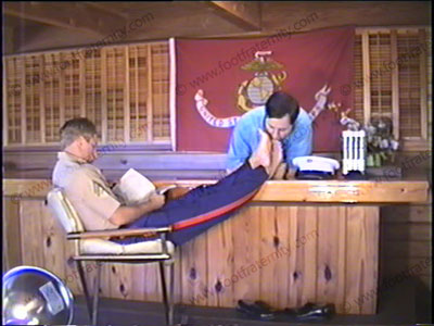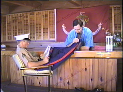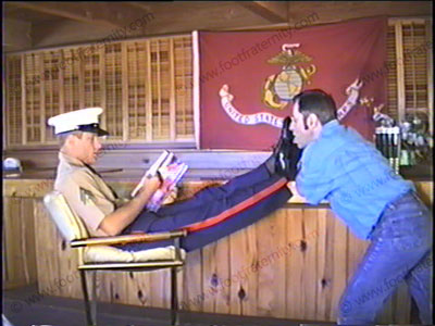 In Marine uniform, he is getting foot lovemaking to his marine oxfords, sheer cap toe sox, then his bare feet from two different views while he expects this love. Just music background, & Marine foot lovemaking make this a sensuous, hot, foot love tape. Close ups, & full shots!