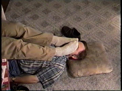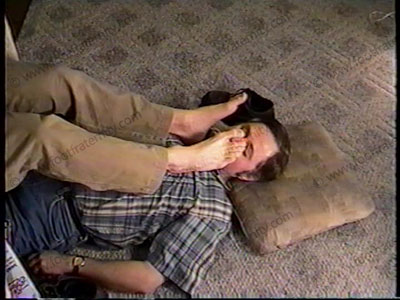 Same scene as above V-556, except this is Close up only on his feet in the face.