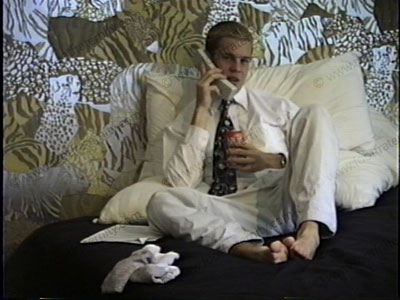 In white shirt, tie, white sox & L.L. Bean boots, Danny reads the story of winning a bet that he had his slave write. He pulls off his shoes to expose his sweaty wool sox wigging them in your face as he talks to the camers, the off come the sox as he continues & makes comments, teases in his boyish charming way & laughing at this service. He then sits back on the bed with lots of close ups of his face & feet as he reads the story. Then he gets a call from his slave for a little hot talk phone action from Danny's end where he gets cocky & tells the callers what to you. (You are the caller!) Hot orders, comments & talk from this teenage jock.
