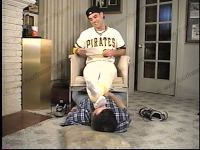 In baseball uniform, Ethan reads the letter from a worker at his college in which love is confessed about Ethan's jock feet! He laughs & teases. Then Ethan uses him for foot service, sniffing the sox & shows his straight superiority & shoves his right in the face. Ethan has discovered that as a teenager, he is now in charge of the this guy. Talks about his jock world & the guys in the locker room - he plans to post the letter in the locker room for all his team mates to see. He is a REAL college ball player! He loves this adulation & control of whatever he says, goes!!. He talks of all his foot slave will do to serve him. Much teasing while he laughs as the slave is serving his sanitary sox in stirrups then bare feet! Then uses him as a foot stool as he sits back.