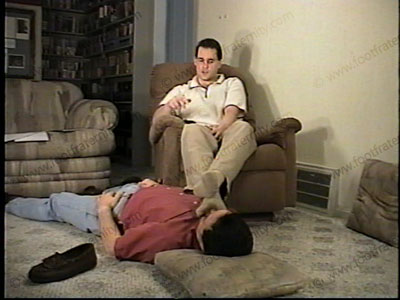 In kilty, tassel boat shoes, Master Ted answers questions from the Frat members as he has his shoes licked, removed & tan crew sox serviced & sniffed as he answers & dominated the slave & members. Mostly sock action, then bare foot service. He sits back for a period of foot service & adoration. Propping his feet on the back, using as a foot rest, while he relaxes.