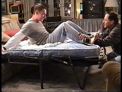 Two views of this scene of hot straight, stud, college stud. Brent is left in bed, strapped in bondage by his girlfriend, when the gay next-door neighbor comes in to find him in this tempting situation. He tickles the hell out of Brent's hot sweaty. bare feet! They sweat when they are tickled. He is very ticklish, yells for "mercy". He can't take much of the foot tickling! He squirms & tugs trying to break free of the tickle from a brush, feather, & crawling fingers. He blackmails Brent with a video tape. IT'S HOT!