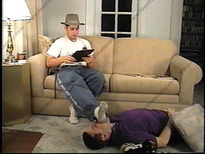 In Hilfiger Jeans, sneakers, smelly white socks with gray soles, Nikko teases & torments his boss, He learned that his "pain in the ass" boss is Bi. He uses this info as blackmail to make his boss his foot slave. ALL VERBAL humiliation & abuse as Nikko makes the boss smell, kick, kiss his sweaty sox, lick, suck, kiss & love his bare feet. He reads the comments that his coworkers wrote, treats Marcus like dirt, wipes his feet on him, makes him suck toes, lick between them, spits in his face & mouth, makes him lick his sweaty sox clean. Laughing, teasing, all with verbal & hot talk & embarrassment of the boss, making him grovel! Two camera views (one close up) of this hot scene as he orders his foot worship. Now HE gives the orders. He smokes cigarettes, ashes in his mouth, spits, teases, & does what his co-workers want him to do to humiliate the guy. This 20-year-old punk really likes the power that he has with his feet. He is cocky and a lot of attitude. (Bonus at end of the scene - bare feet from the beach!)