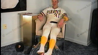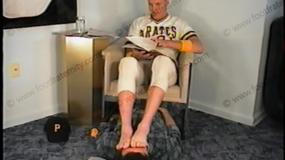 When coming to lounge after the game, this stud athlete shows that JOCKS RULE! Two camera views (one close up) of this hot scene as he orders his cleats licked clean, then his thin white socks sniffed & wiped in his slave’s face. Troy makes a film of this to show the guys on the team. He gives the orders. He is superior, but not abusive. He likes the idea of being paid to rub his feet in our faces! He informs slave how lucky he is to be able to worship the socks & feet of a straight ball player. Great size 12, thick, strong feet on this young guy as he uses them to step all over his slave’s face.