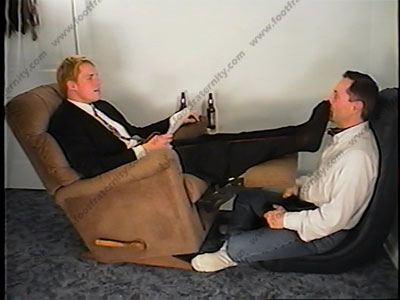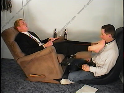 This is part two to the above scene. He has his slave on a leash & dog collar as Troy sits back in his Lazy-boy chair with slave pinned to the wall under the feet. Shoe licking, sock worship & sniffing, then barefoot action. He finishes the questions that the members sent in by E-mail for Troy. Two great views of this scene, one full length, one close up of his feet. He teases, shoves the socked feet & bare feet in the face of his slave! He holds the leash throughout the whole scene, often pulling the slave’s face into the bottoms of his feet. Troy LOVES to dominate us under his sweaty feet. Clips toe nails in slave’s mouth. Spits in his face. He sets up the 10 commandments of his feet!
