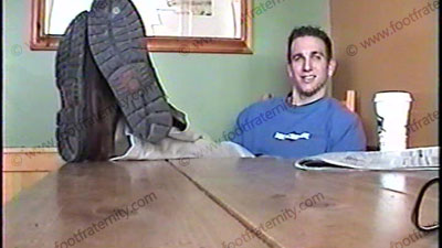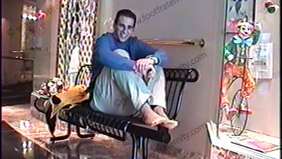 Actual photo session with Max for the Frat! See how the photo sessions really go with the real behind the scenes comments from this straight teen and us, as he poses in a local pubic Starbucks Coffee Shop, then in an up scale mall while other people are around. He has fun putting his feet up on tables, removing his shoes then removing his socks. Some photos with his feet being sniffed or kissed right there in public. , He is wearing casual Abercrombie &Fitch clothing, khaki pants, tan dress socks & teenage Timberland type boat shoes! Very interesting documentary tape of how we get the straight guys to model these poses for us in the Fraternity! Max talks about himself, tells things about his own life since he is not in character for a video tape - so you get to know the inside story about this guy! Excellent camera angles and great close ups with the camera often being at his feet. See him smirk as then general public walk by to see his feet up on tables in public and being the part of a hot young model. VERY well done film! Then see some "at the beach" footage after Max’s photo session! Many hot male bare feet there!