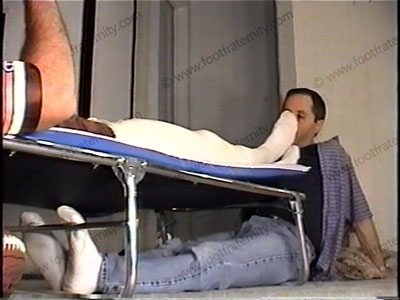 Just after the game, Travis comes to the locker room, stretches out on the cot & has a slave smell his socks & worship his feet. He has sissy slave trapped under the cot, forced to smell & serve the jock socks & feet. The phone rings & a real live true hot j/o call from a Frat member. Travis humiliates him, embarrasses him & gets the guy to reach highs while on the phone. Much foot kissing & licking. He gives great verbalization & domination, which is embarrassing & humiliating. He yells, gives out orders, makes fun of the caller & treats him like crap. Talks about all. Two views, (one close from under the cot to see the slave under Travis’ body & feet, & one from full view to see Master Travis). Very hot talk about all aspects of humiliation & domination of Travis!