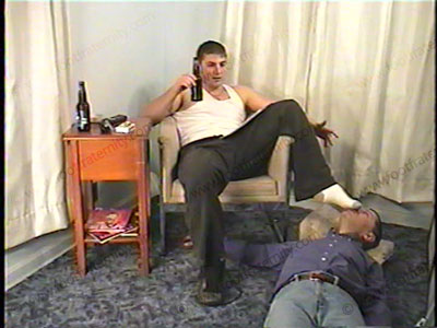After workout, in smelly sneakers & white sweat socks, wife beater T-shirt, this 18 year old high school football star & has his sneakers licked then removed for sock & bare foot adoration & complete service. Licking between toes, sucking them, etc. as he reads a humiliating letter of confession written to him by his slave. He embarrasses his bitch sissy slave - domination, humiliation, verbal abuse, teasing, using him as a footstool as he smokes, etc. Humiliating demands. Sock sniffing, bare foot worship. He laughs at the slave as he shows his straight superiority & wipes his feet all over the face & keeps the slave underfoot. He uses slave as a footrest. He ashes in sissy's mouth! Lots of verbal hot talk & much teasing. JT then watches his straight X videos, using his slave as a footstool as he gets hot. JT makes slave beg to smell his socks and feet, then sets the orders of how it will be from now on. Hot talk & embarrassing his foot slave. He teases & laughs at his sissy in controlling manner. His amusement at having a foot slave is beyond the fun he thought! Two views, (one full, one close up). He is cocky, using much foul language, & likes being paid for this.