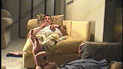 Super straight, Bryce in baggy slacks, dirty sneakers & white sweat sox, pull over shirt is lying back on the sofa. While watching hot x videos, he orders slave to lay beneath his feet in to lick his sneakers, sniff & worship his sweaty sport socks and lick & kiss & service his bare feet. He then reads the notes that his hockey team wrote after they saw the video of the slave serving Bryce at his feet. He makes another video for them of his responses. He embarrasses him by reading it and commenting with much foot action, licking, toe sucking, sock sniffing, footrest to this 24 year old guy’s size 11 feet. He now has to do whatever Bryce wants as he sets the rules for the future. This jock forces the sissy to submit to the youth of this athlete. Two good views of this scene, one close up and one full body. He rests and wipes his sweaty feet in the slave’s face, makes him lick out his toe sweat, as his attitude and arrogance comes blasting through. Bryce is laid back and just states things as they are with having the attention to his feet and his desires followed for the future. He takes control in a teasing, fun manner as a friendly top that knows how to get what he wants with his straight feet! Uses him at a footstool at the end while watching his videos.