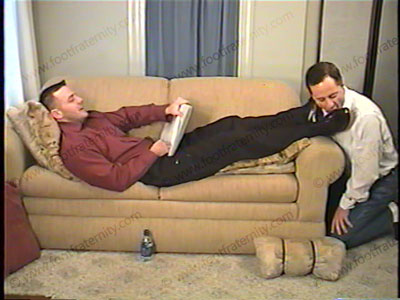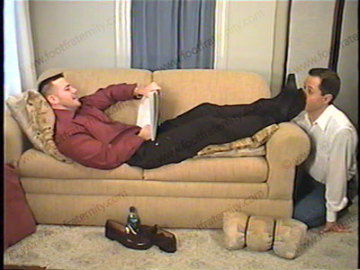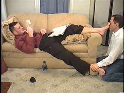 In dress pants, dress shirt, dark socks & Bass Weejun penny loafers, this jock football player has shoes licked while he gives the “Heterosexual Guy’s Rules & Laws for Slaves”. He makes comments & decides how the slave must obey them as he has his shoes licked, then removed for sock & foot adoration as he gives humiliating orders & embarrasses his bitch sissy slave - domination, humiliation, verbal, teasing, then foot worship, etc. Much sock & bare foot in the face. He teases, humiliates & dominates, & constantly laughs his ass off & gets hot over it! Constantly making love to the Stud’s feet & socks, etc. Two cameras – one with close ups & full-length view.