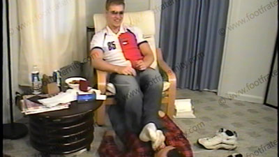 It is even more Real TV time showing college stud, Taylor’s real personality and how he really feels and likes this position of being a Foot god. There is no script, just a conversation between the two. They are not made up answers – it’s just the two of them talking while his feet are in the slave’s face. In jeans, Tommy H. shirt, sweaty white socks & sneakers this sports jock has shoes licked & removed for sock & foot adoration as sits over his slave and his feet are in the face. Toes wiggling, being sucked, feet shoved in face and much bare foot service. This stud jock basketball player decides for real what he wants, and how he wants to be treated in real life. This is not staged – this is just filming him saying what he likes and wants from his foot slave after a Frat video was filmed. He answers comments about the videos and how he is to be serviced after they are over the face during this whole conversation, as they talk back and forth. It’s very real, very erotic and exciting that in "real life" he really does want someone beneath his feet as they just talk or as he comes up with ideas for future treatment. He really likes to be in this superior position for REAL. During this entire conversation, Taylor has his socks sniffed, licked and kissed, and has his bare feet and toes in the slave’s face and mouth. He now knows his power & decides how he is going to keep using it. He laughs more is taking advantage and the power that he has at his feet. His ego loves being the king or god, and his conversation is exciting. His real personality is one that loves the adoration and attention. He wants to have this power over all foot slaves. So exiting to hear him talk about why he REALLY likes this service, and what he is really like, and how he decided to let gay men be his foot slaves. Two views, one close up of the feet in the face and one full view. Total truths are told here. Solid foot in face action throughout the time they are talking. He absolutely knows what is a turn on for us and he LOVES to do it.