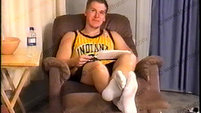 After a basketball game, while in full uniform, (& with a goatee) Taylor sits back with his feet up to answer a letter by making a video for his best friend - Justin. He tells what happens in the scenes, what will happen in the future & laughs, teases & teaches Justin how to have a foot slave. Taylor mocks & teases, humiliating the foot slaves with his comments that he tells the camera. Taylor laughs while making many cocky comments. This sports jock then removes his sneakers to wiggle his sweaty socked toes in the camera. He tells all the secrets of how much get gets for this adoration. A hot solo tape with both cameras at the feet of this macho jock. One full view & one with really tight close ups on his face, crotch & feet. Taylor dominates & humiliates – loves taking our money & shoving his feet in our face. HE LOVES THIS FOOT ATTENTION – & plans to use it for his gain for all time! He is conceited, cocky & arrogant now that he can use his straight, macho feet to control us. Sports jocks rule. This is the first tape of him alone with you (the viewer) watching his comments, as he looks right at you while telling how he would dominate you. He talks about water sports & all kinds of domination! It’s a solo tape of Taylor and the camera.