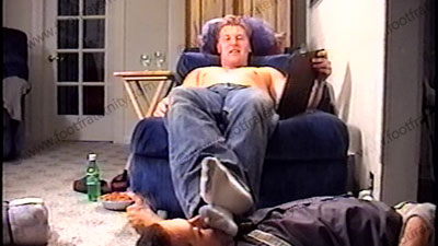 In jeans, no shirt, sneakers, white socks, this Republican Jock lays back on sofa with slave beneath his stud feet, as he sets more laws that liberal sissy democrats are to follow. Forces shoe licking, the orders of this political party, sweaty white sock service & barefoot action. Much teasing, commands, gifts, foot worship, toe sucking, spiting, laughing at the power & more. Two views of this scene. One from the soles of his feet, one from the side – close up. Taylor rules because he is straight, Republican & a well built jock.