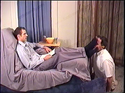 This nicely dressed guy gets into teasing his foot slave by forcing him to sniff his dark gold toe socks, lick cap toe shoes & service his hairy bare feet Slave follows orders this guy who realizes he is a god to foot slaves. Two views, one full, one close up. He commands with a macho, yet teasing & gentle nature since he is straight, strong & a jock. He loves this foot worship. He sets up rules as a god (for real) with slave underfoot. Classic sock sniffing, licking, foot kissing, licking, toe sucking, etc. Then a solo to YOU in the camera as he talks to you, telling you what he wants you to do to his feet, with great close ups of his wiggling, hairy toes.