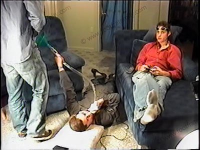 Bare chests, jeans, sweaty white socks, These jocks relax to have his slave serve & worship their feet as they ignore him while playing video games. Socked wiped all over his bitch's face, sniffed & adored. Then bare feet licked, kissed, toes sucked & more, as they rub feet all over the slave's face. Korie does water sports using the bong to force bitch to drink it a few times! Two views of this scene, one close up. They ignore, dominate & teases bitch underfoot while being paid to play games.