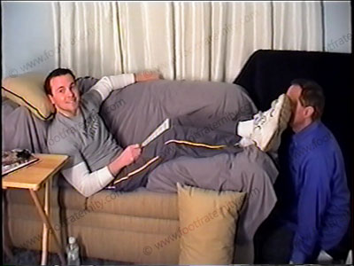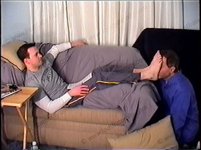 This hot executive is back from the gym in sneakers, white sweat socks & sweats. Adair is a Fortune 500 type of guy who and he orders his foot slave to worship his socks, sneakers & feet while being verbal & commanding with much teasing. Slave kneels his feet as his socks are sniffed & worshipped while Prince Adair lays back on the sofa. Commands, foot service, domination, verbal & control. Then bare feet licked, kissed, & toes sucked as he uses the slave's face as a play-toy for his feet. Two views of this scene, one close up. This GQ guy is awesome, commanding & arrogant as he takes full control of his foot slave.