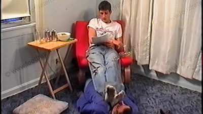 In jeans & sweaty white socks, Dirk gets another fan letter & servant contract from Mia who is into his feet. He loves this worship while a guy is there in person, serving at his feet. He tells of his sensual fantasies while having foot worship. Sock sniffing, bare feet licked, kissed, toes sucked & more. Two views of this scene, one close up. He is excited & turned on by the words. He teases & laughs at taking worship from all. He gets excited by this hetero experience talk during foot love making to his feet by a guy! He LOVES this power and the action at his sweaty, Str8, macho feet! A friendly and fun film.