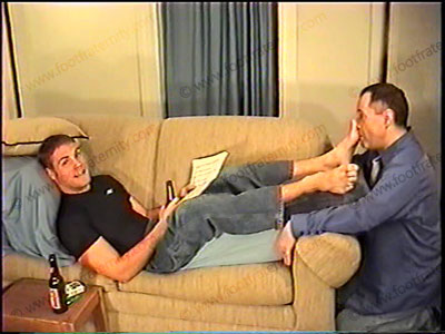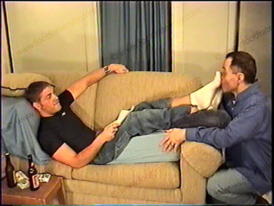 In jeans, sneakers, white sweat socks, with his bitch kneeling at his feet, macho, well-built Stone dominates & takes control of his bitch. Wearing a tight, Under-Armor T-shirt, he commands while his foot slave is at his feet in service of his sweaty socks & bare feet worship. He is verbal & controls with the power of a Straight Surfer. Then bare feet & toes licked, kissed & sucked, ashes in mouth, water sports, spits, takes calls & you can hear both guys, & much more. A full view, then a close up. Total verbal teasing & foot control. Bitch washes his feet and drinks the dirty bath water as he laughs, talking to you in the camera & his bitch. Total domination, teasing & humiliation.