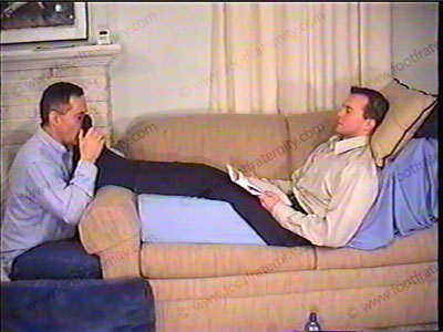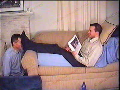 After work, in hot dark dress socks with dress shirt/slacks– Adair looks at the web site where he is our god to all foot slaves. He gives commands while dominating & humiliating his foot slave. Sock sniffing, bare feet licked, kissed, toes sucked, smell his feet, lick them & more. Two views of this scene, one close up. He is very arrogant, powerful & a controlling business executive to his foot slave who must pay to be his bitch. Much foot flexing, toe movement, toes sucked with solid foot in the face throughout. He is relaxing on the sofa while bitch is at his perfect G.Q. feet.