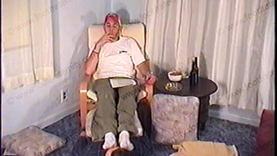 In baseball cap, white socks, etc., this Jock sits over his bitch with his socked & bare feet in his face, as he totally dominates & takes control of all foot slaves. He sets the rules of us serving him as a “god” while his foot slave is beneath his feet in service worship. He is teasing, verbal & laughs as he enjoys the power of a Straight athlete Jock with bitches who pay to be dominated & humiliated by him while beneath his feet. Then bare feet & toes licked, kissed & sucked, ashes in mouth, spits, as he watches. Two views of this scene, one full, one close up. Total verbal teasing & foot control. Constant verbal domination as he is cocky & very arrogant.