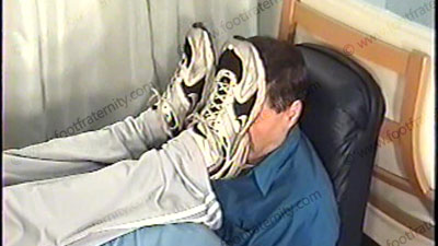 After workout at the gym, in sweaty white socks, this macho, straight jock loves to tease. Two views of this scene, one full, one close up. He rubs feet on slave’s face constantly & very verbal as he takes control. He gives a list of slave openings to be filled by Frat members to serve him. He is cocky, arrogant, macho & powerful at having foot worship & service. His has his bitch pinned to the wall while he relaxes with sock sniffing, licking, worship & much teasing & laughter at his power & control. Then bare feet & toes licked, kissed & sucked as he teases, ashes, spits & more. Creating rules for his foot slaves & much more. This super straight jock has total control & loves the power of slaves at his feet.