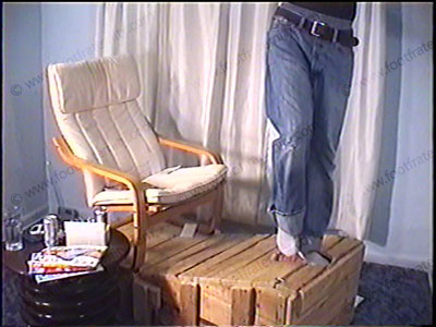 In jeans & tight black T-shirt, sneakers & sweaty sheer white socks, Arrogant, bully, Spike locks his slave in the confinement crate & sits on top of him while forcing his sweaty socks in the face for sniffing & kissing & teasing & humiliating his slave. He does everything: spit, foot action, much trample on the face, sitting on the face while reading a magazine, bare foot action, licking feet & toes, ashing, & more. Two views, one full, one close up. This jock makes fun of the fact that he is 18 & can do this to a slave. Much teasing, smell his feet, lick his feet, eat his toe jam, spit, toes sucked. ANYTHING he wants! He owns us. Pure control.