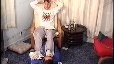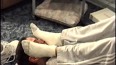 In work-out pants, sweaty white socks, Drake has his socked & bare feet caressed & loves to tease and place us all under those sweaty socked & bare feet. Making all kinds of hot comments about having love making to his feet. Two views of this scene, one full, one close up. He laughs, eats up this feeling & loves having his feet sniffed, licked & kissed. He is chillin’ & keeps his sweaty socked & bare feet in the face beneath them. Not dominating, just teasing, laughing and enjoying this power of Frat guys who get off on making love to his feet just because he is a straight, macho, stud as he soaks in the power he has over us & a fantasy of how he can take over our house & lives!