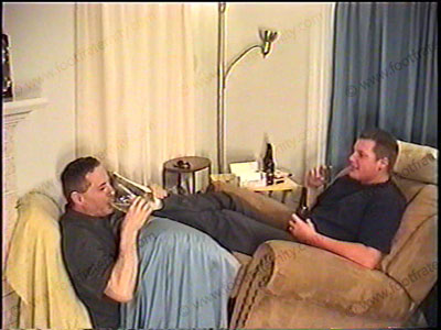 In work pants, blue shirt, Master Jake is able to controls his bitch sissy slave who is pinned at his feet while he sits back in a recliner. During very sweaty & dirty white/gray work sock & foot worship he controls slave shoving his sweaty feet in the sissy’s face. He spits in the face. He dominates, teases & torments in many ways & is verbal with power, control and demands. VERY arrogant and Straight! He uses water sports to control. Two views of this scene – one close up. He demands foot adoration as he smokes cigars & ashes in his bitch’s mouth. Foot licking, toe sucking, sock sniffing launder sox in mouth, much paddling on the butt & more of much humiliation & domination.