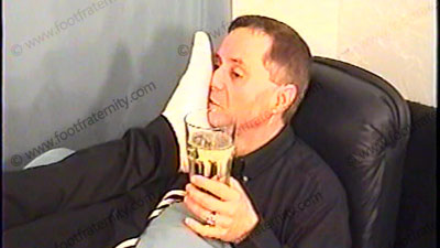 After workout, he takes off sweaty T-shirt (hot, well built chest), white sweat socks in the face of slave pinned at his feet for worship, service of his sweaty socks & bare feet. He teases & tells of available slave positions for his foot servants to apply to do. He gives orders, commands & is teasing with much laughter, verbal & enjoys the power of being a very cocky & arrogant & he talks as his real self. Bare feet & toes licked, kissed & sucked as he watches. He likes to tease with his size 13 feet & water sports. Name calling, spit, eating toe jam & toe nail clippings, teasing with his macho feet, sock sniffing, smelling & licking his feet while telling all his thoughts & commands as he takes gifts for allowing us to worship his feet. HE OWNS US FOR REAL! Two views, one full, one close up.
